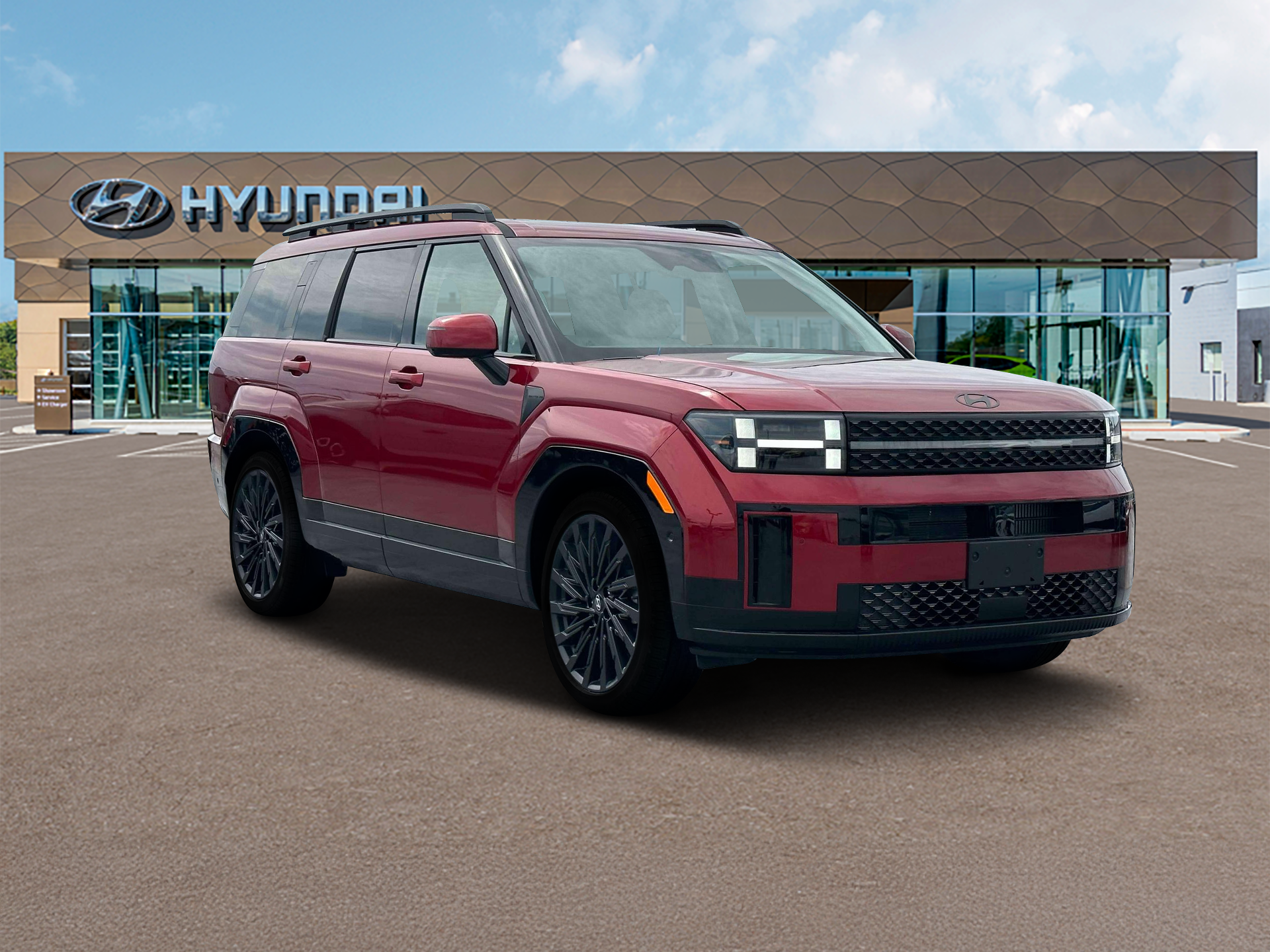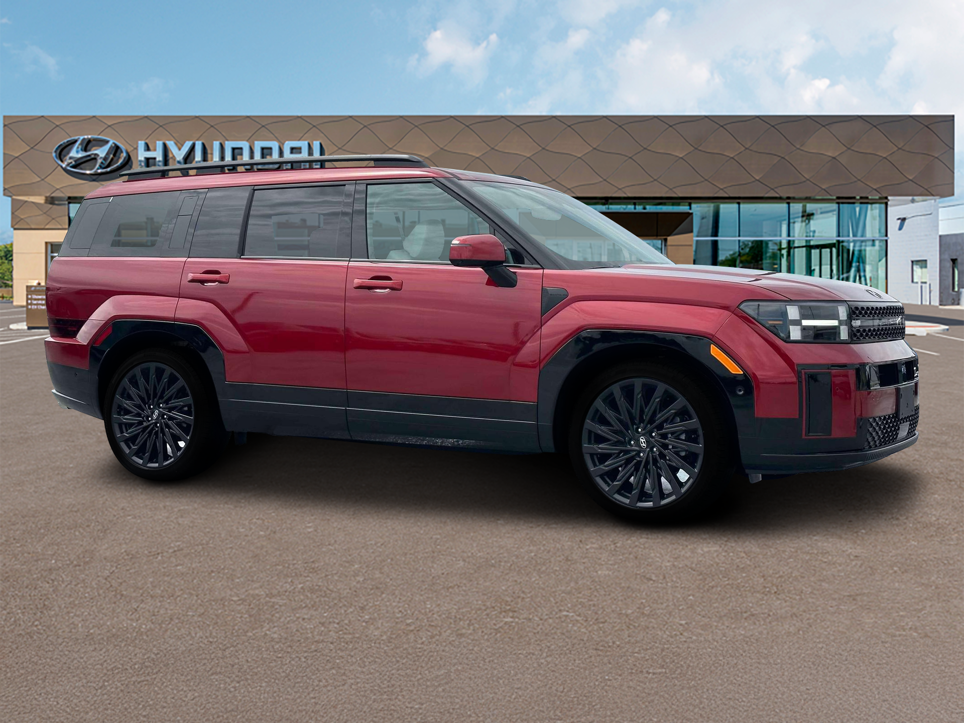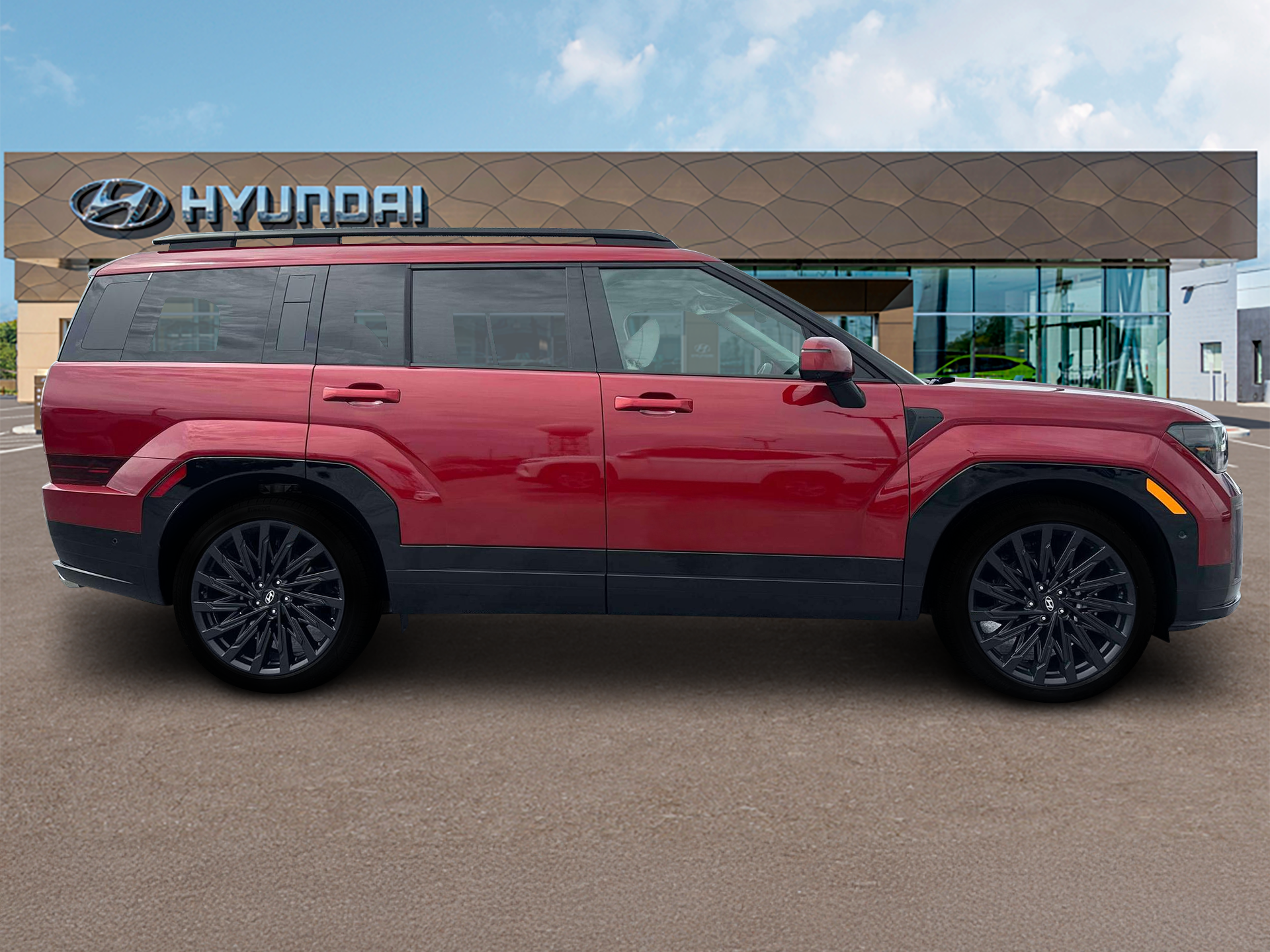 Ultimate Red 2025 Hyundai Santa Fe Calligraphy AWD Shiftronic 2.5L I4 AWD, Black Leather.