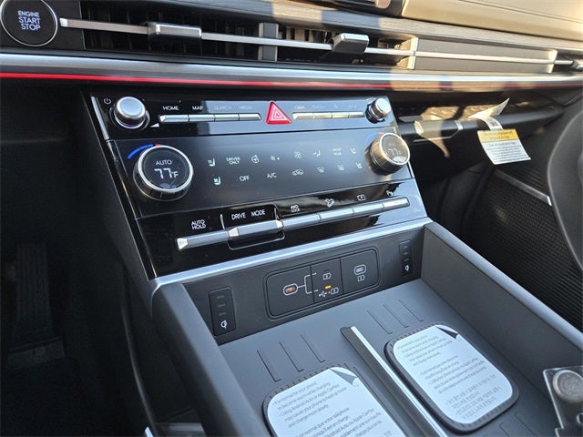 - Radio: AM/FM/HD Bose Premium Audio System -inc: 12 speakers including subwoofer, external amplifier, 12.3" wide touchscreen, wireless Apple CarPlay and Android Auto, Bluetooth® hands-free w/wireless audio streaming, dynamic voice recognition, USB connectivity, SiriusXM, wifi hotspot, Blue Link connected car system, navigation system including traffic flow w/incident data via HD Radio (HERE), OTA updates and rear seat quiet mode