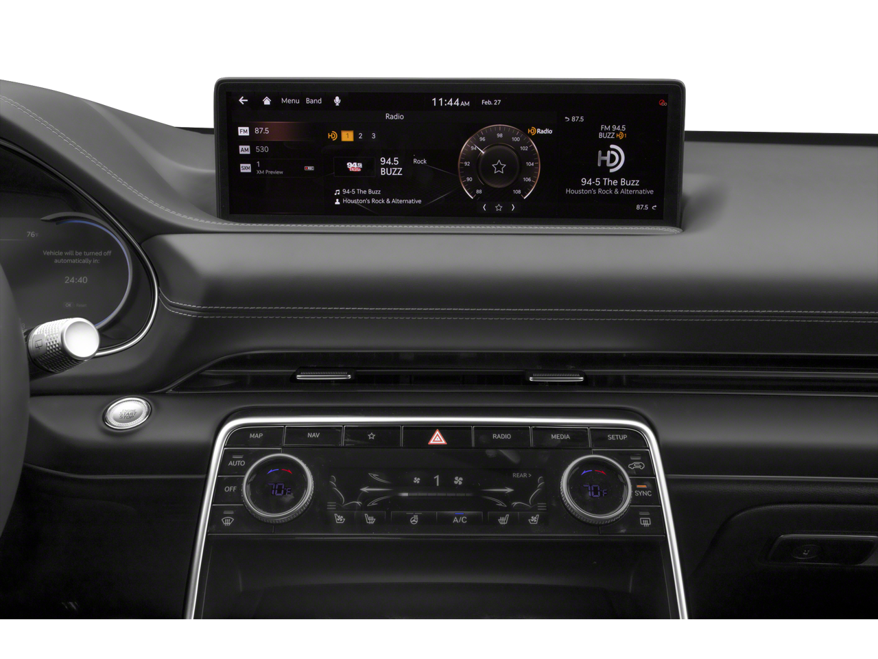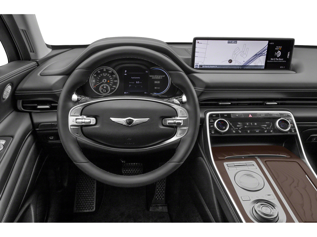- Radio: AM/FM/SiriusXM/HD Premium Audio System -inc: internal amplifier, integrated navigation, 14.5" HD LCD screen, Apple Carplay and Android Auto, Bluetooth® hands-free phone system w/audio streaming, steering wheel controls, 2 front and 2 rear USB ports, 2 12v power outlets, front wireless device charger and Genesis Connected Services