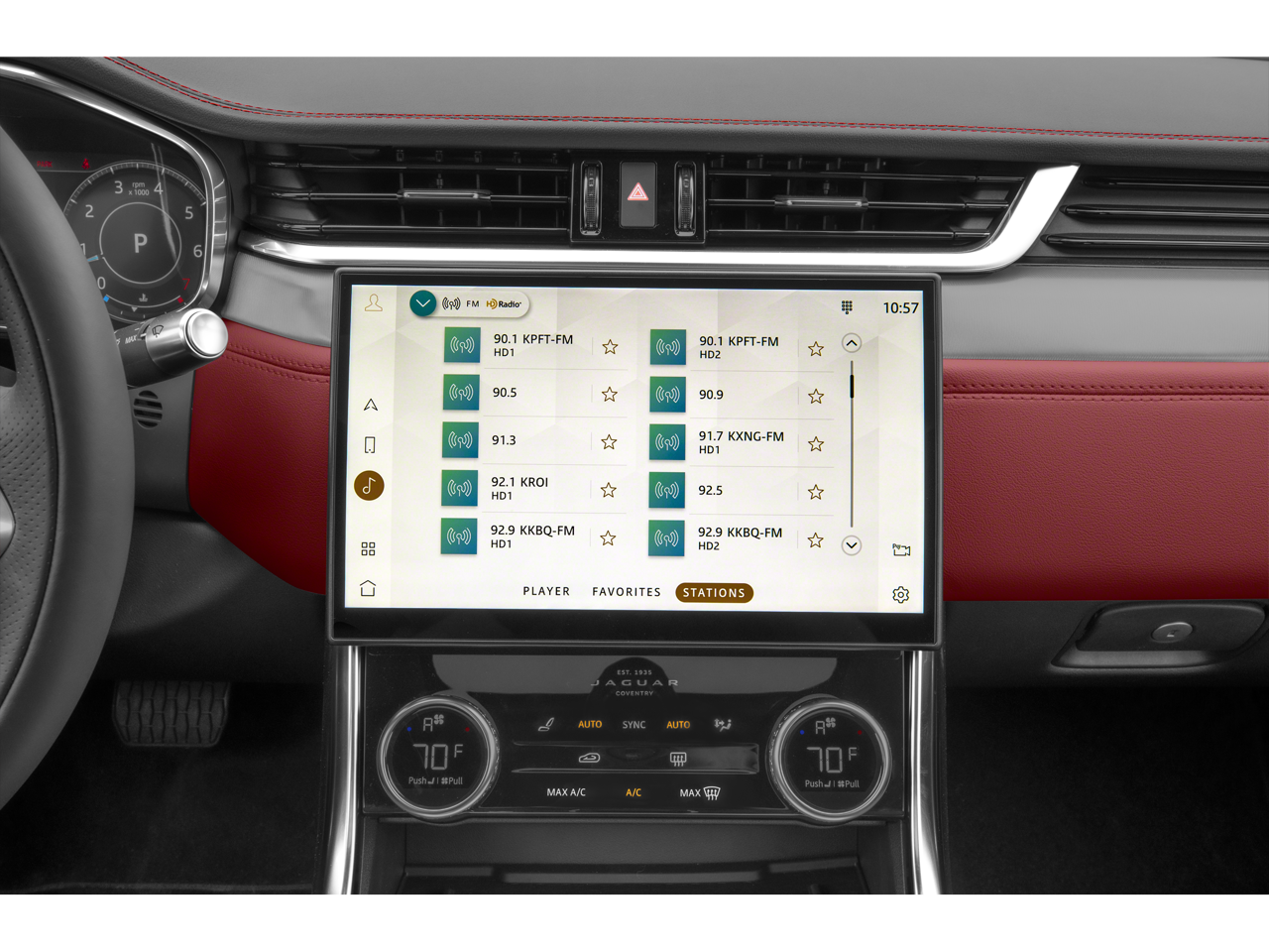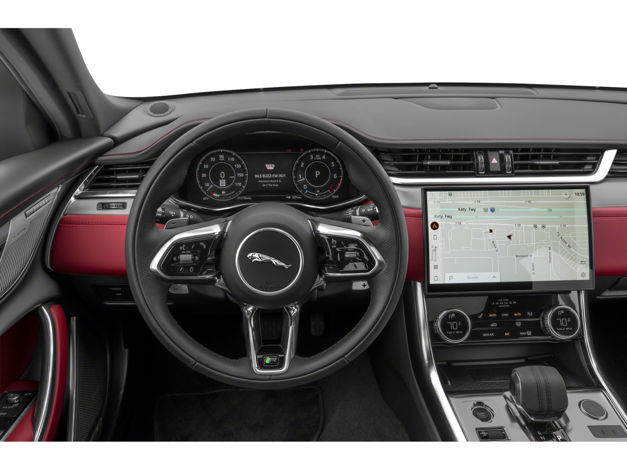 - Radio: Meridian 380W Sound System -inc: Pivi Pro w/11.4" capacitive touchscreen, online pack w/data plan, Apple CarPlay, Android Auto, dynamic volume control, Bluetooth® connectivity and audio streaming, SiriusXM satellite radio, InControl Remote (including remote climate control, lock and unlock, beep and flash, SOS emergency call, Jaguar optimized assistance call and stolen vehicle locator) and wireless device charging w/phone signal booster