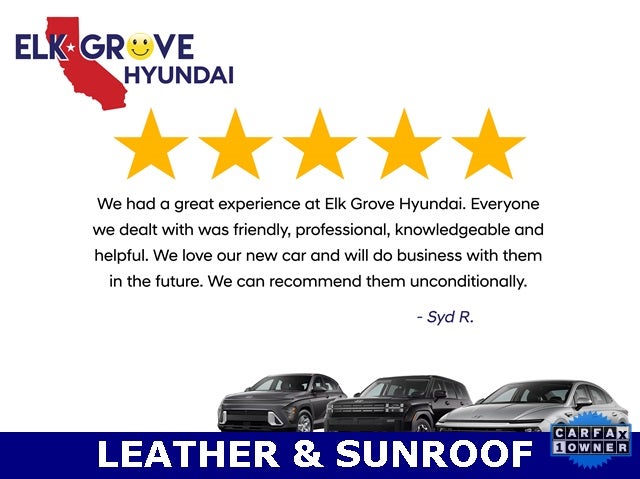 Elk Grove Hyundai offers a large selection of pre-owned and certified pre-owned inventory at prices you can appreciate. Whether you are searching for a car, van, truck, SUV or crossover, we have the perfect vehicle for you. Please verify all features before purchasing; * Prices and payments do not include tax, tag, title, and other official fees. All pricing and details are believed to be accurate, but we do not warrant or guarantee such accuracy. Vehicle information is based off standard equipment and may vary from vehicle to vehicle. All specifications, prices and equipment are subject to change without notice. Call or email for complete details and information. While every effort has been made to ensure display of accurate data, the vehicle listings within this website may not reflect all accurate vehicle items. Accessories and color may vary. The vehicle photo displayed may be an example only. Vehicle Photos may not match exact vehicles. All inventory listed is subject to prior sale. Please confirm vehicle price and details with Dealership. 40/35 City/Highway MPG