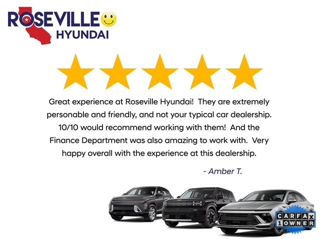 Recent Arrival! CARFAX One-Owner. Priced below KBB Fair Purchase Price! Roseville Hyundai offers a large selection of pre-owned and certified pre-owned inventory at prices you can appreciate. Whether you are searching for a car, van, truck, SUV or crossover, we have the perfect vehicle for you. * Prices and payments do not include tax, tag, title, and other official fees. All pricing and details are believed to be accurate, but we do not warrant or guarantee such accuracy. Vehicle information is based off standard equipment and may vary from vehicle to vehicle. All specifications, prices and equipment are subject to change without notice. Call or email for complete details and information. While every effort has been made to ensure display of accurate data, the vehicle listings within this website may not reflect all accurate vehicle items. Accessories and color may vary. The vehicle photo displayed may be an example only. Vehicle Photos may not match exact vehicles. All inventory listed is subject to prior sale. Please confirm vehicle price and details with Dealership.